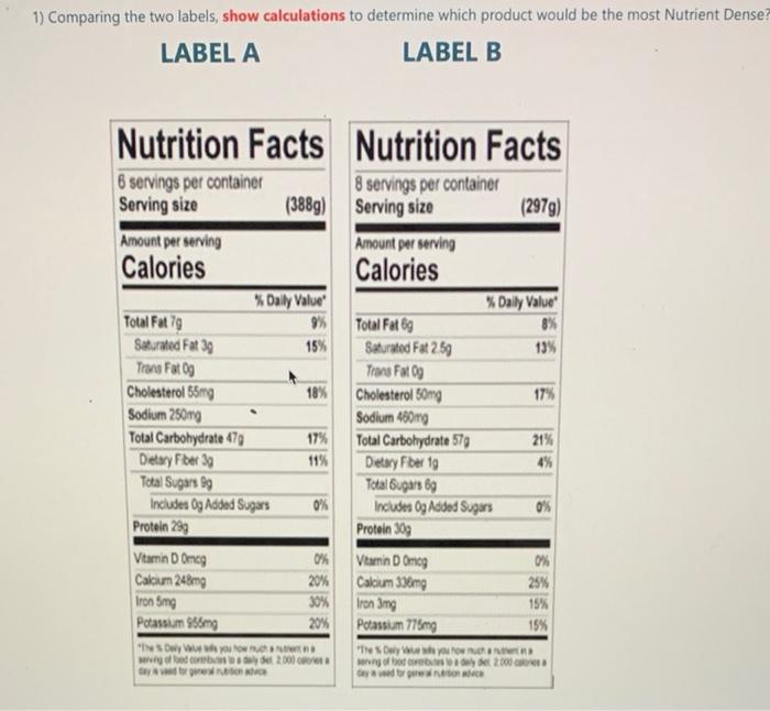 How to understand food labels | Eat For Health The Nutrition Information Panel on a food label offers the simplest and easiest way to choose foods with less saturated fat, salt (sodium), added sugars and kilojoules, and more fibre. It can also be used to decide how large one serve of a food group choice or discretionary food would be and whether it's worth the kilojoules. Comparing Nutrition Labels - OT PLAYBOOK Clarify any medical diets that the client follows including diabetic, cardiac, etc. Steps Review a sample nutritional label with the client. Ask them to find the following on a sample label: Total calories Grams of fat Calories from fat Grams of carbs Grams of protein Total sodium Grams of sugar How Do They Calculate Calories on Food Labels? The 1990 Nutrition Labeling and Education Act (NLEA) for the first time required that food manufacturers put the amounts of nutrients and calories on the package label. Instead of using the bomb calorimeter method to establish calories in foods, manufacturers began using an easier process: the Atwater method. ... Compare calories in similar ...